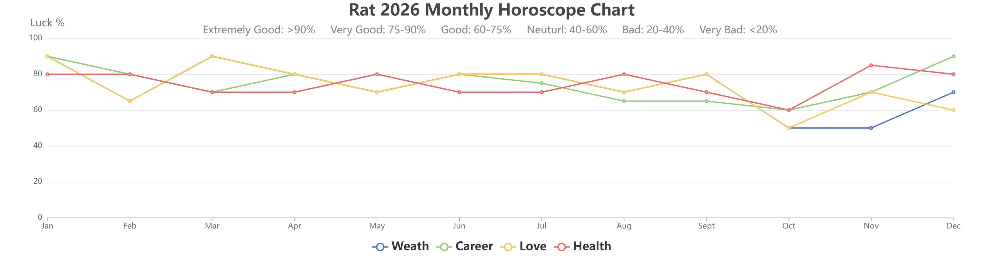 The overall fortune for those born in the Year of the Rat is relatively poor in March 2026. While things may seem calm on the surface, underlying turbulence may be present. Fortunately, their luck in encountering helpful people is stable, so they can receive timely assistance. They need to be mindful of the people around them. Financially, there might be minor monetary losses, so it's important to manage finances carefully to avoid a financial crisis.