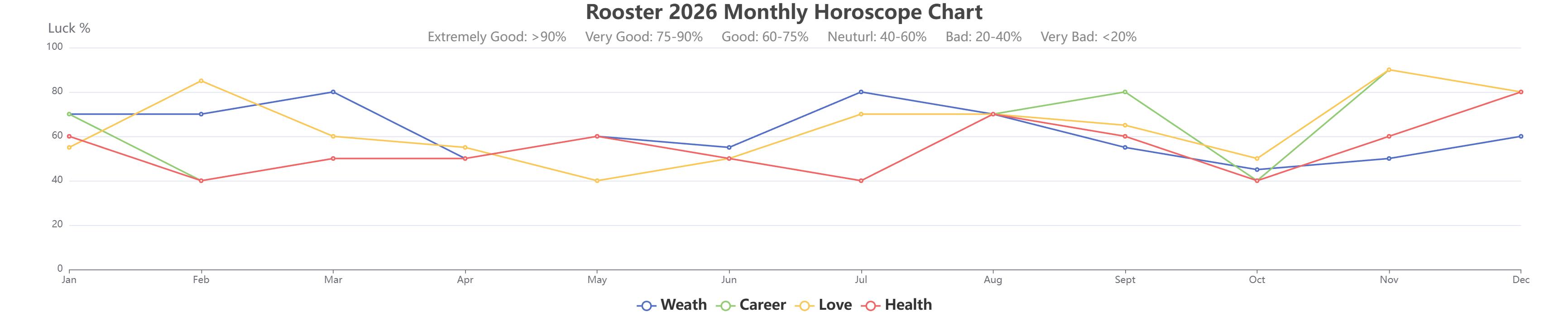 Love Fortune: The love life of them progresses relatively smoothly this month. Single Roosters find it hard to meet a compatible partner and need not be in a hurry; those in relationships should be more tolerant of their partners' minor shortcomings, avoid quarrels over trivial matters, and stabilize the existing relationship.